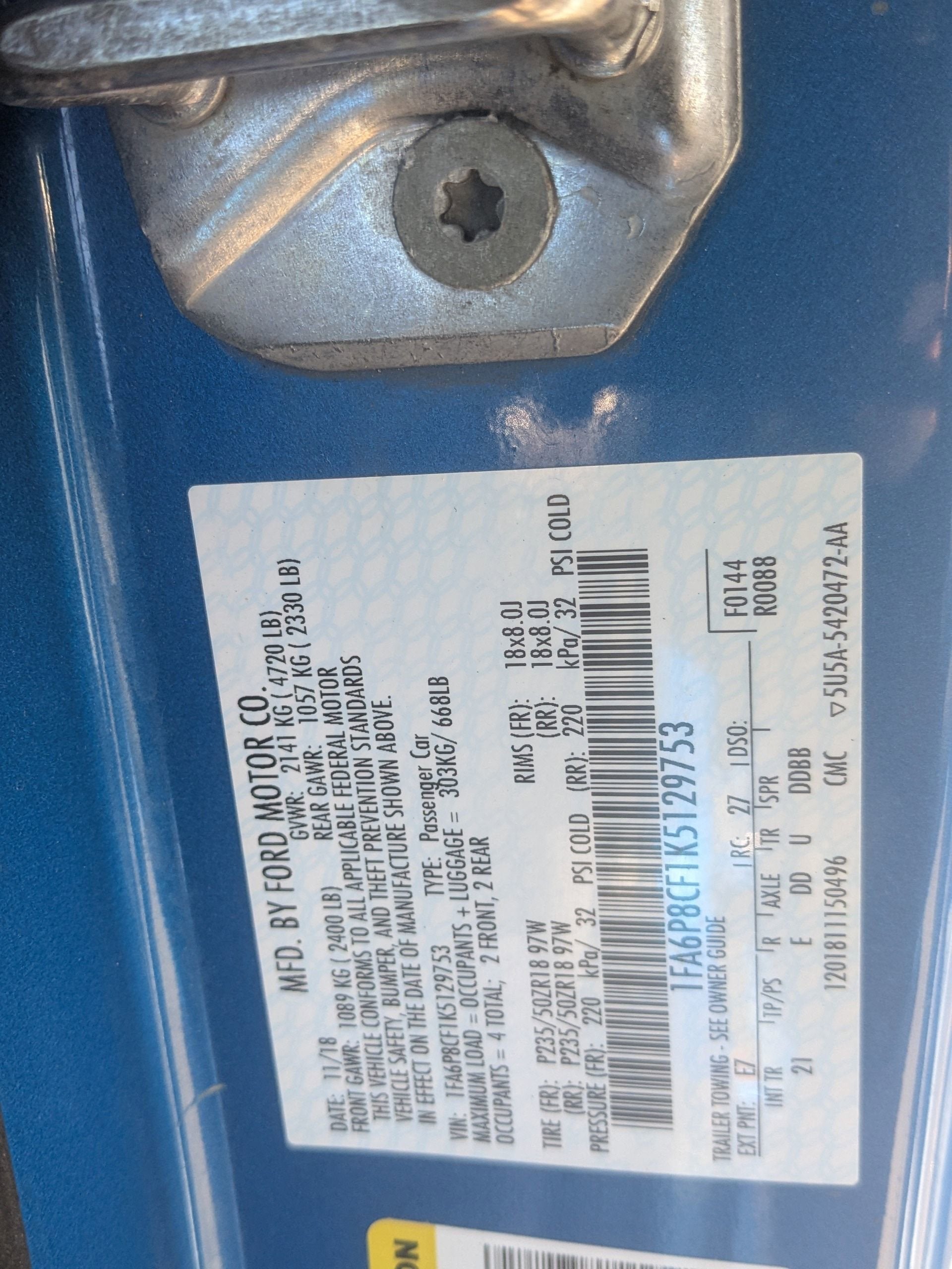 - Vehicle Name: Ford Mustang