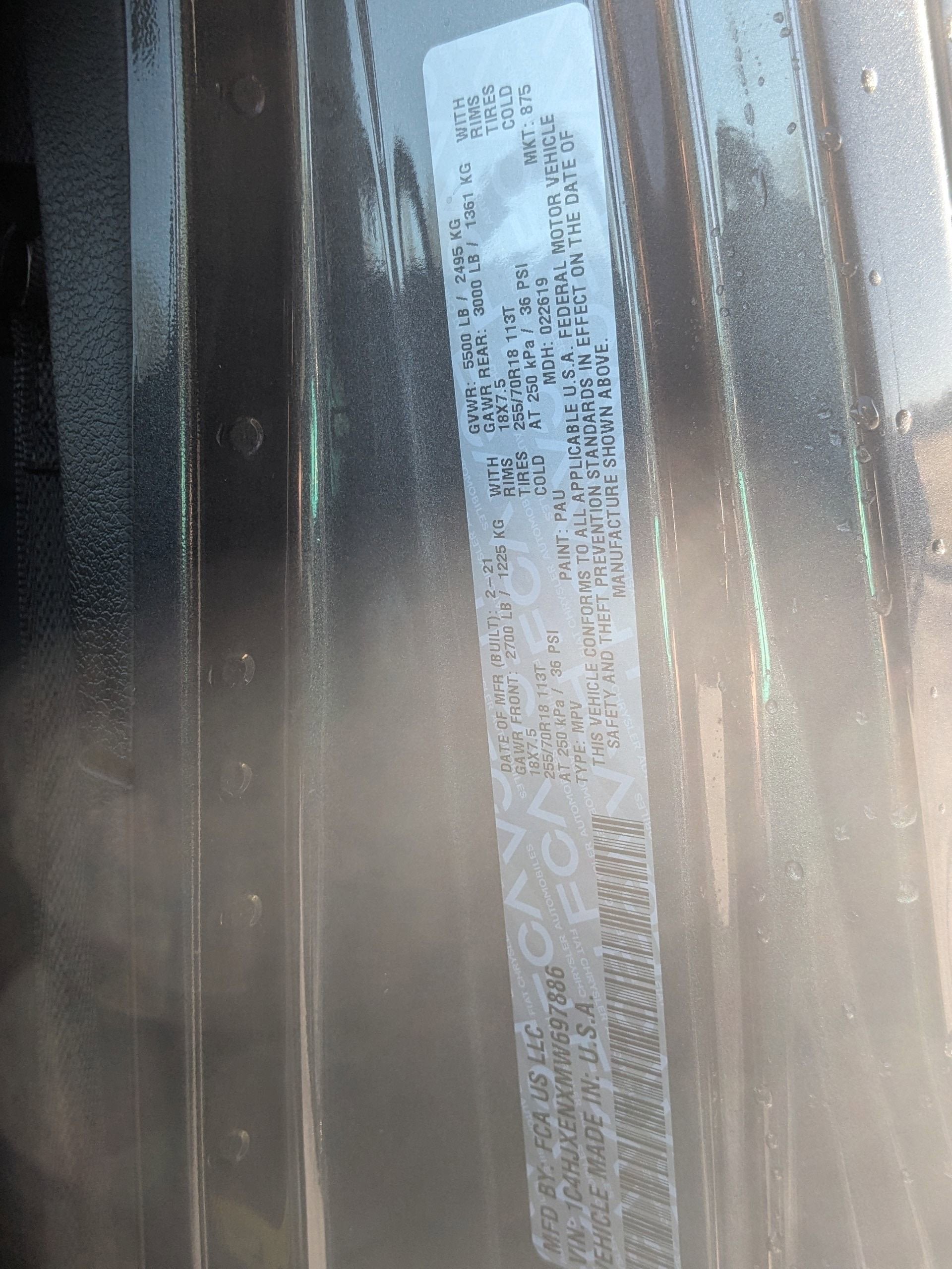 - Tires: 255/70R18 All Season