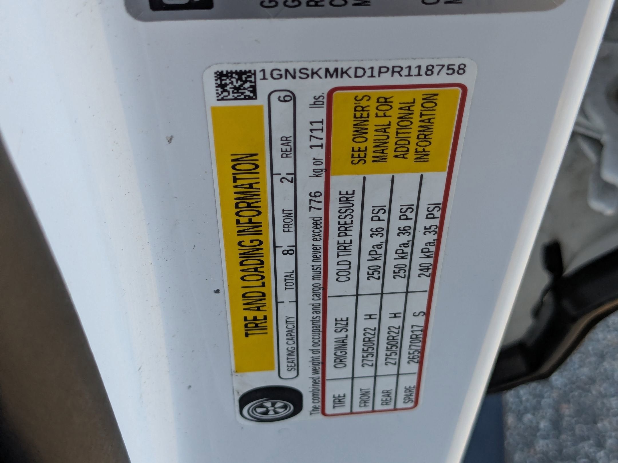 - Spare Tire Order Code: XCQ